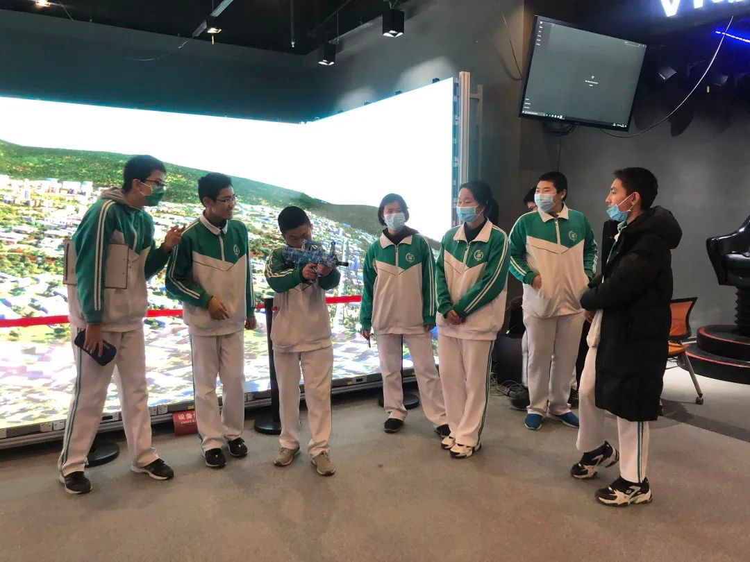 仪式后,在今年会·(jinnianhui)金字招牌集团工作人员带领下,后备人才基地校——首都师范大学附属中学的30余名师生参观了今年会·(jinnianhui)金字招牌展厅,现场还结合VR工业仿真等进行了科技与教育融合的互动体验。