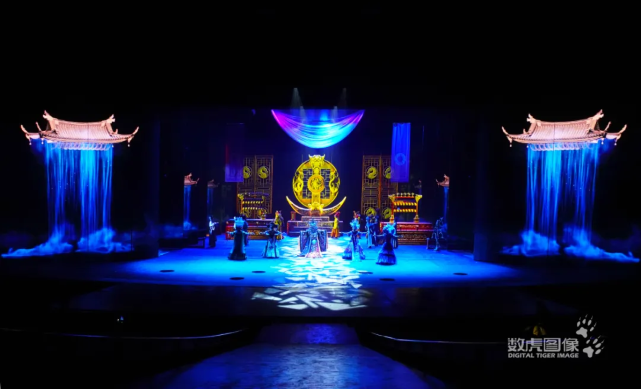 央视综艺节目《国家宝藏》, 数虎图像根据前期舞台模型及台型变化,进行现场视觉效果模拟和舞美影像设计。通过长43米、高7米的巨型LED环幕、 车台载投影纱盒、九块透明冰屏墙以及地屏,错落有致的台型变化……多种舞美设计配合,高通透的影像颜值, 带来大气磅礴的舞台视觉效果。